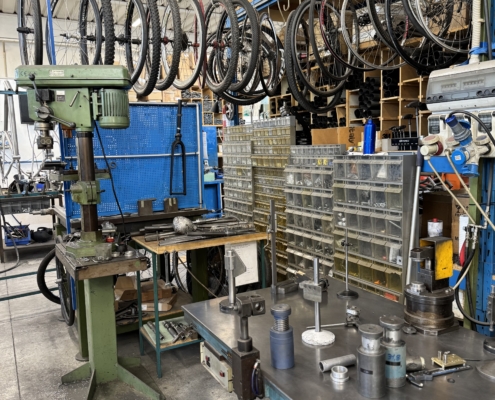 Seit über 30 Jahren wird hier mit viel Herzblut und Leidenschaft Aluminium, Stahl und Carbon verarbeitet. Und was gleich auffällt und das Mechaniker Herz höher schlagen lässt – keine Schweißroborter! Eine Halle voll mit hochwertigen Rohrsätzen und Maschinen die Geschichten erzählen.